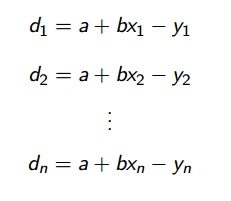 Onde y1, y2,...,yn correspondem a distância entre a reta e o ponto da tabela.