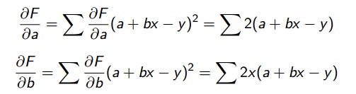 Para que esse somatório seja mínimo, e portanto a reta ser uma reta de mínimos quadrados é preciso que :