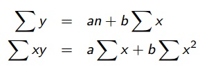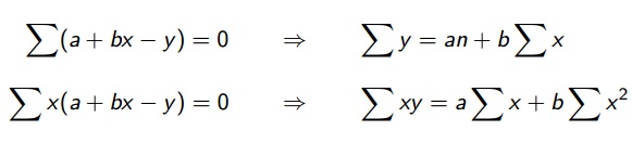 Para determinar a e b é preciso desenvolver as equações normais para a reta de mínimos quadrados: