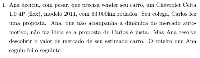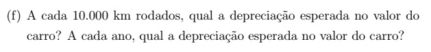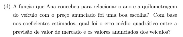 Como dito no enunciado, o Celta de Ana é de 2011 com 63000km rodados. Então, com a função encontrada na letra c, é possível encontrar qual o valor justo para o arro de Ana: