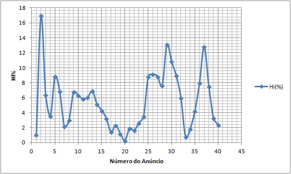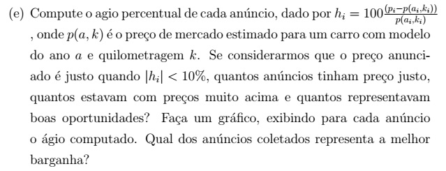 Ainda com a planilha eletrônica Excel, aproveitamos a tabela do exercício anterior para calcular o agio de cada anúncio. O agio foi calculado como descrito no enunciado e obtivemos os seguintes resultados