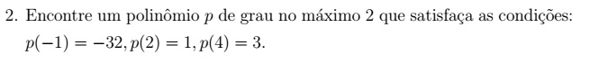 Sabemos que o polinômio interpolador será: