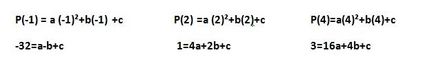 Então para encontrar o polinômio que satisfaça as condições, temos que fazer as devidas substituições em P(X).