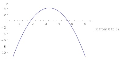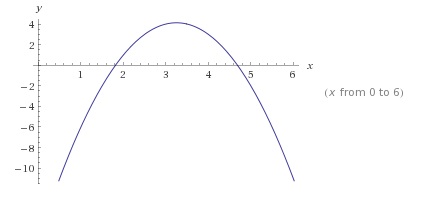 O gráfico desse polinômio está na imagem abaixo, com raízes em x=1,8 e x=4,6(aproximadamente) .