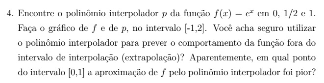 Porém a interpolação não é aconselhável quando é preciso obter um valor aproximado da função em algum ponto fora do intervalo de tabelamento, ou seja, quando se quer extrapolar e também quando os valores tabelados são resultados de algum experimento físico ou de alguma pesquisa, porque, nestes casos, esse valores poderão conter erros inerentes que, em geral, não são previsíveis.