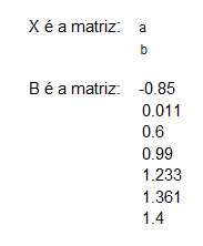 Em que a e b são os coeficientes que temos que determinar