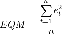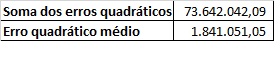 Por fim, foram somados os erros quadráticos, e depois dividido por 40. Encontrando-se, então, o erro quadrático médio (EQM).
